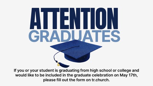 We are excited to celebrate our grads! If you or your student is graduating from high school or college & would like to be included in our Graduate Celebration on Sunday May 17th, please be sure to fill out the form.